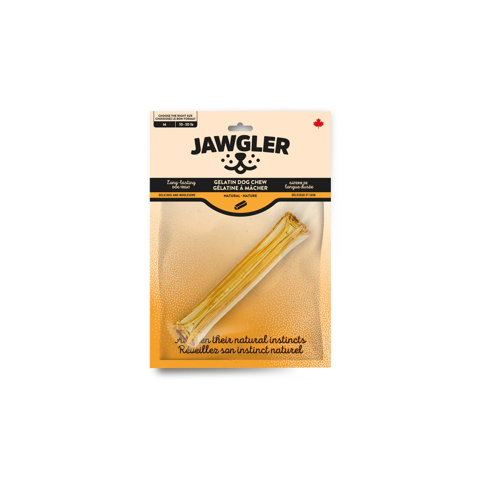 Jawgler Gelatin Dog Chews are made from simple, 100% Quebec-sourced ingredients and a unique protein: gelatin. This pure source of collagen contains over 90% protein and 18 amino acids. With its changing texture, mouthwatering taste, and easy digestibility, this chew is a treat that’s packed with goodness. Even the pickiest of pups will love it!