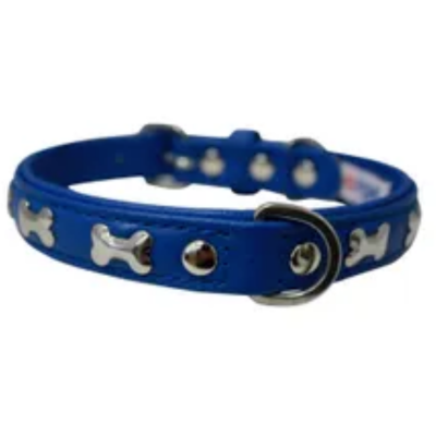 Each collar is built to last with stainless steel hardware and a reinforced center D-ring for secure, easy leashing and maximum control. A single row of polished stainless steel bone accents adds a touch of charm that stands out without trying too hard.