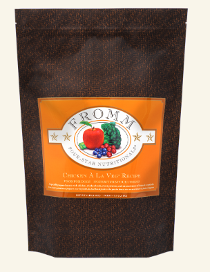 FROMM 4STAR CHICKEN A LA VEG FROMM Sale! from 8995 /per WEIGHT 11.8KG 1.8KG 5.4KG Qty. Add to Cart This item is currently on backorder but you can still purchase it now and we'll ship as soon as more become available. DOG FOOD - A specially prepared entrée with chicken, chicken broth, sweet potatoes, and an assortment of fruits & vegetables Qty available:3 SKU:21748 Tweet
