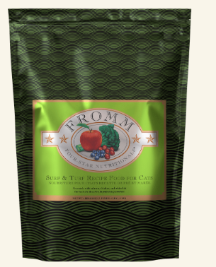 FROMM CAT 4STAR SURF N TURF FROMM Sale! from 3295 /per WEIGHT 1.8KG 4.54KG Qty. Add to Cart This item is currently on backorder but you can still purchase it now and we'll ship as soon as more become available. An exquisite blend of salmon, chicken, and whitefish Qty available:1 SKU:21768 Tweet