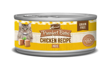 Crafted for cats who appreciate the finer things, Merrick Purrfect Bistro Chicken Recipe Pate Grain Free Wet Cat Food is a full flavored delectably smooth pate that is sure to please even the pickiest eater! Real deboned chicken is always the first ingredient in this high protein cat food. High quality, natural ingredients are finely ground to create a smooth pate cat food with the meaty taste cats love. Taurine, vitamins and minerals go in, too, providing the essential nutrition that cats need. Merrick grain free adult cat food recipes never use artificial colors, flavors or preservatives, and this sumptuous wet cat food pate is crafted without wheat, corn or soy for a truly delicious and filling meal. Whether your cat prefers rabbit, duck or chicken cat food, Purrfect Bistro cat food pates are great for indoor and outdoor cats and come in a variety of recipes your cat will love. All Merrick recipes are crafted in our Hereford, TX kitchen and cooked in the USA, in facilities that uphold strict FDA guidelines.